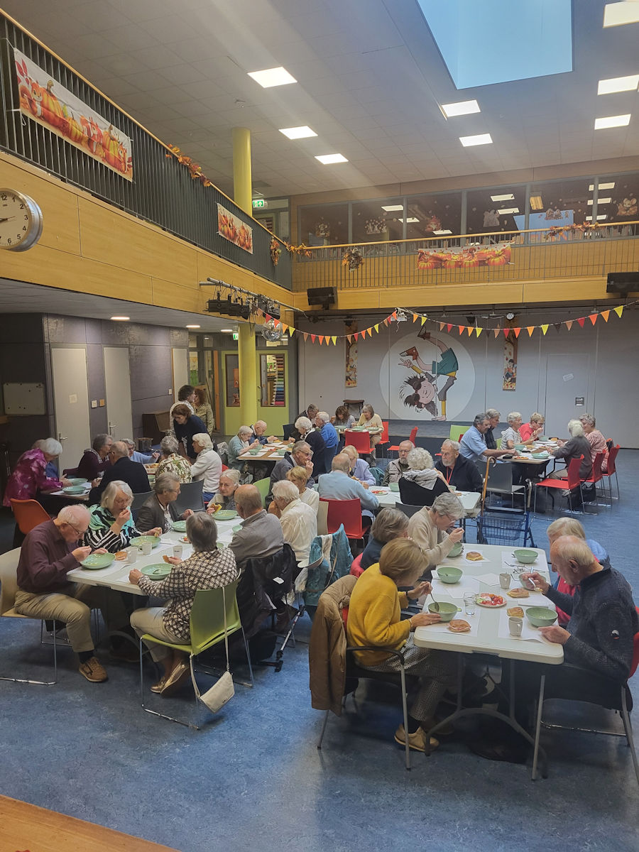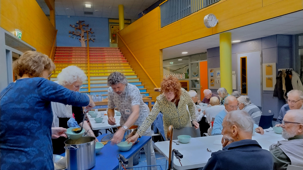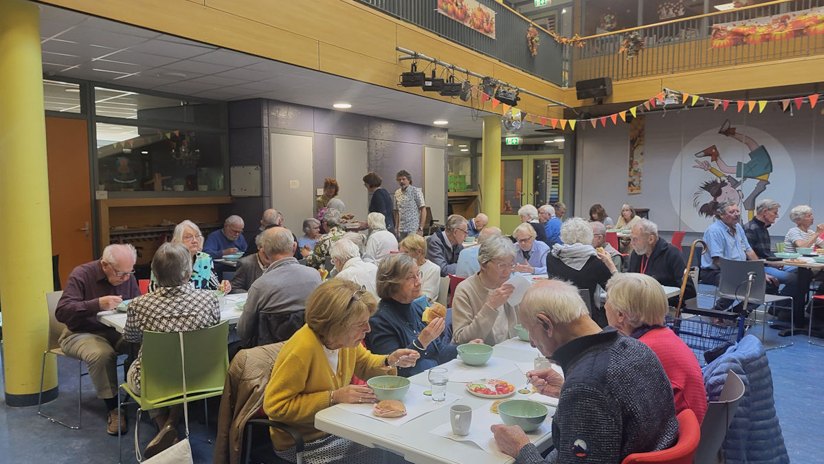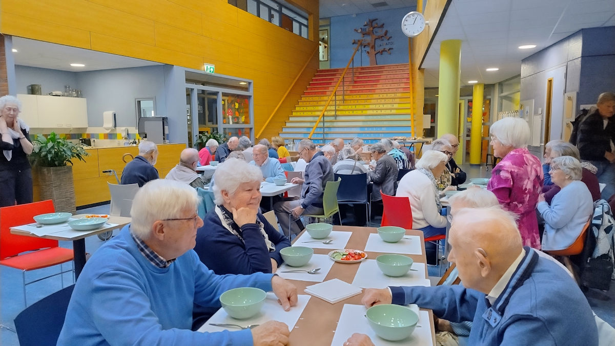 Bij de gezamenlijke lunch met broodjes en soep schoof nog eens een tiental leden extra aan.
