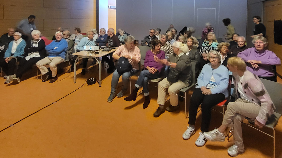 Om half twee nam iedereen plaats in de gymzaal, die omgebouwd was tot filmzaal.